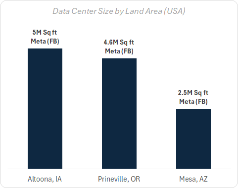 - Meta’s Altoona, IA: Planned to exceed 5 million sq ft